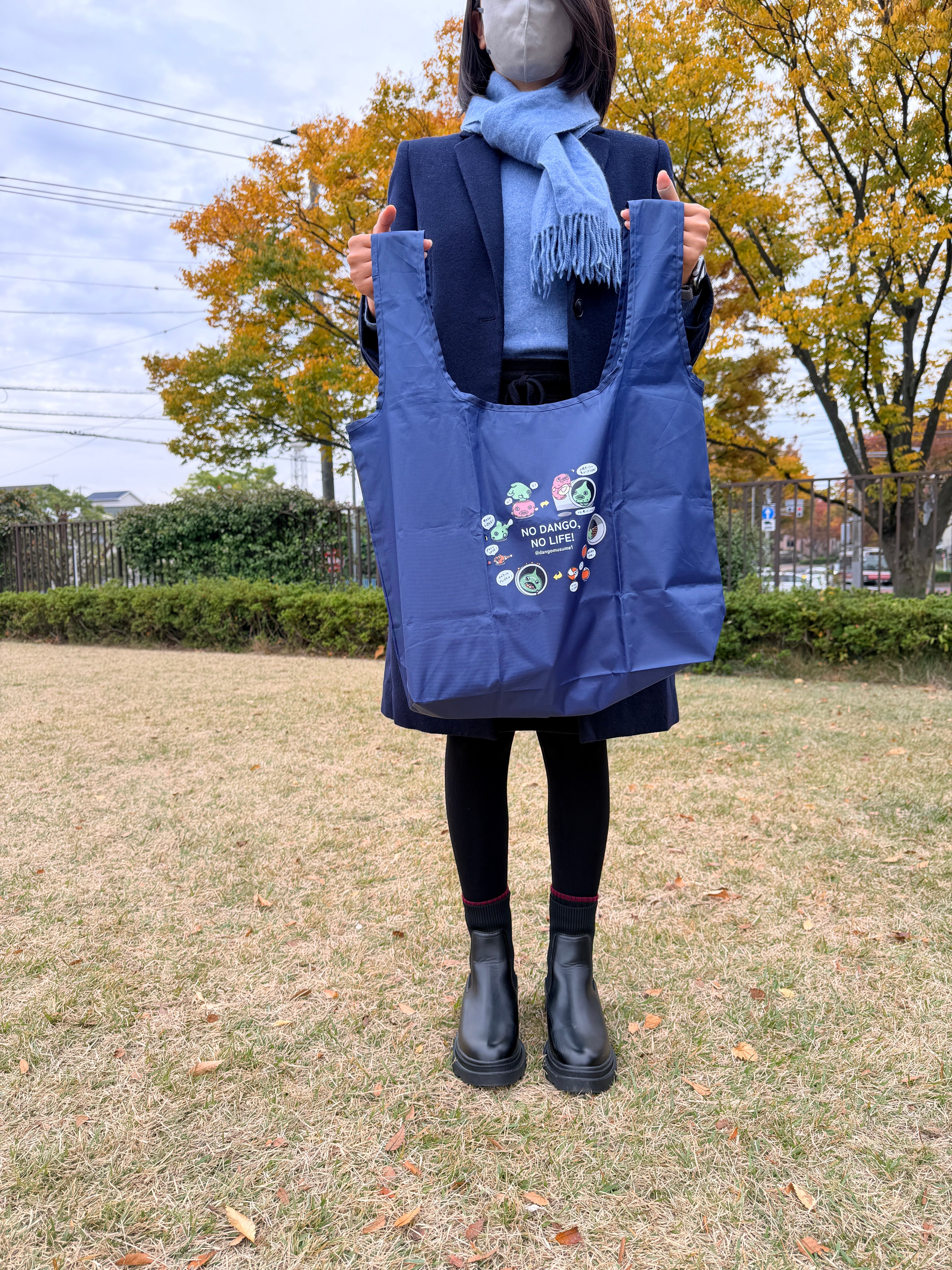 ユニークで可愛らしいダンゴのデザインがひときわ目を引くエコバッグです。